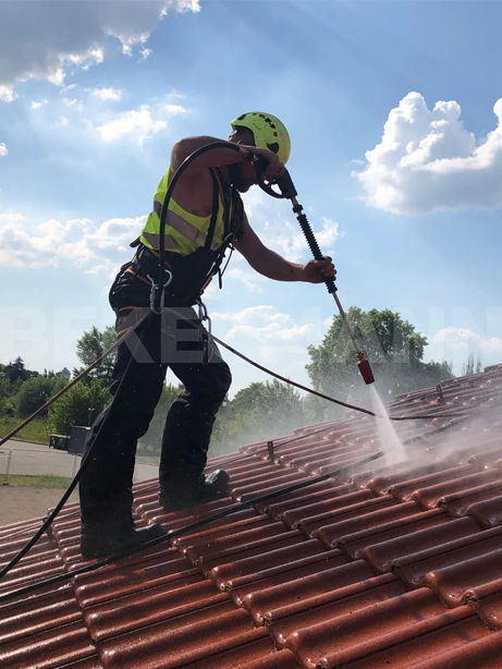 Usuwa brud, mchy, porosty, oraz inne zanieczyszczenia, przygotowując dach do impregnacji.